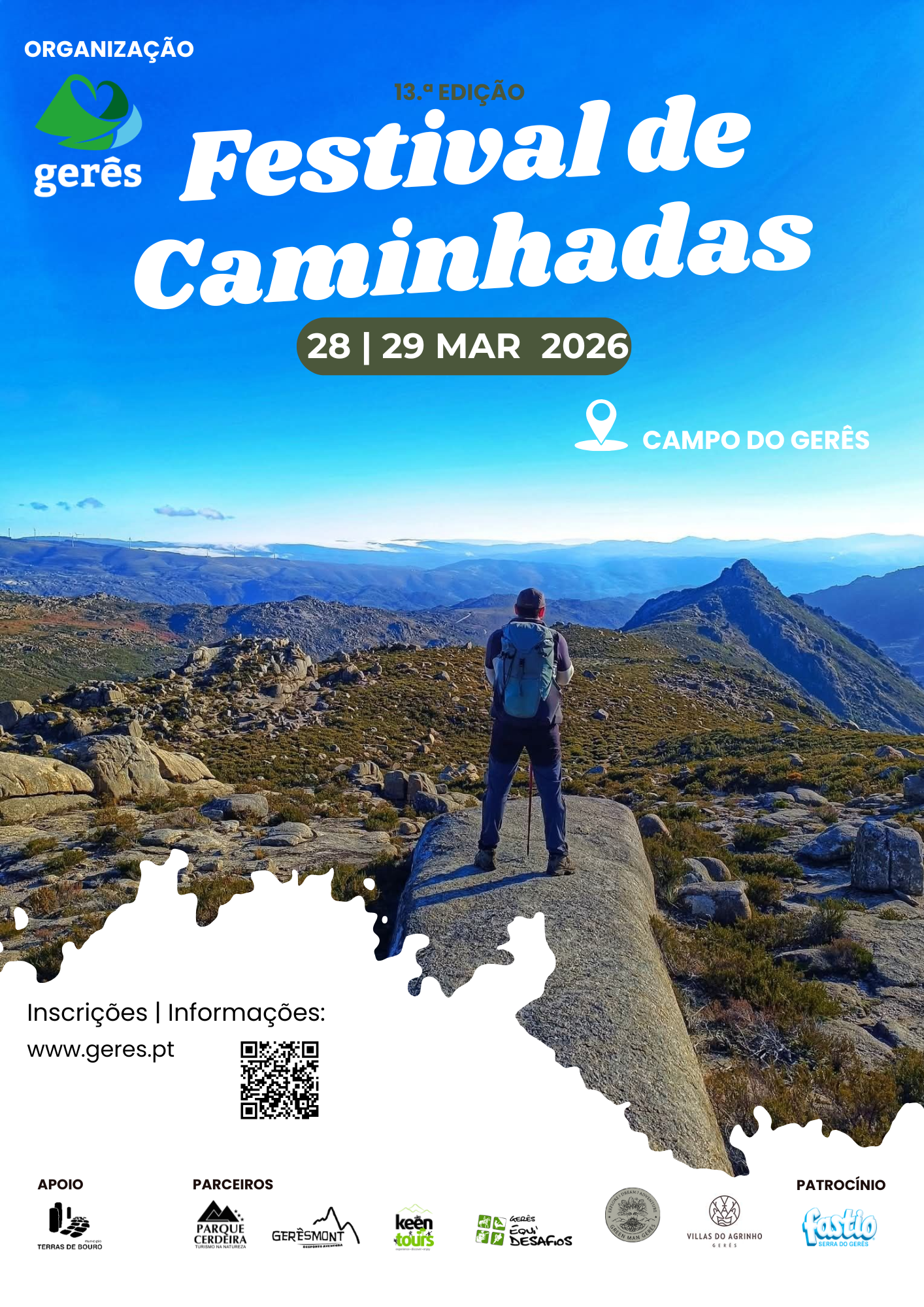 O Município de Terras de Bouro informa que o Festival de Caminhadas no Gerês está de regresso nos dias 28 e 29 de março, para aquela que será a sua 13.ª edição, consolidando-se como um dos eventos de referência do Turismo de Natureza em Portugal.